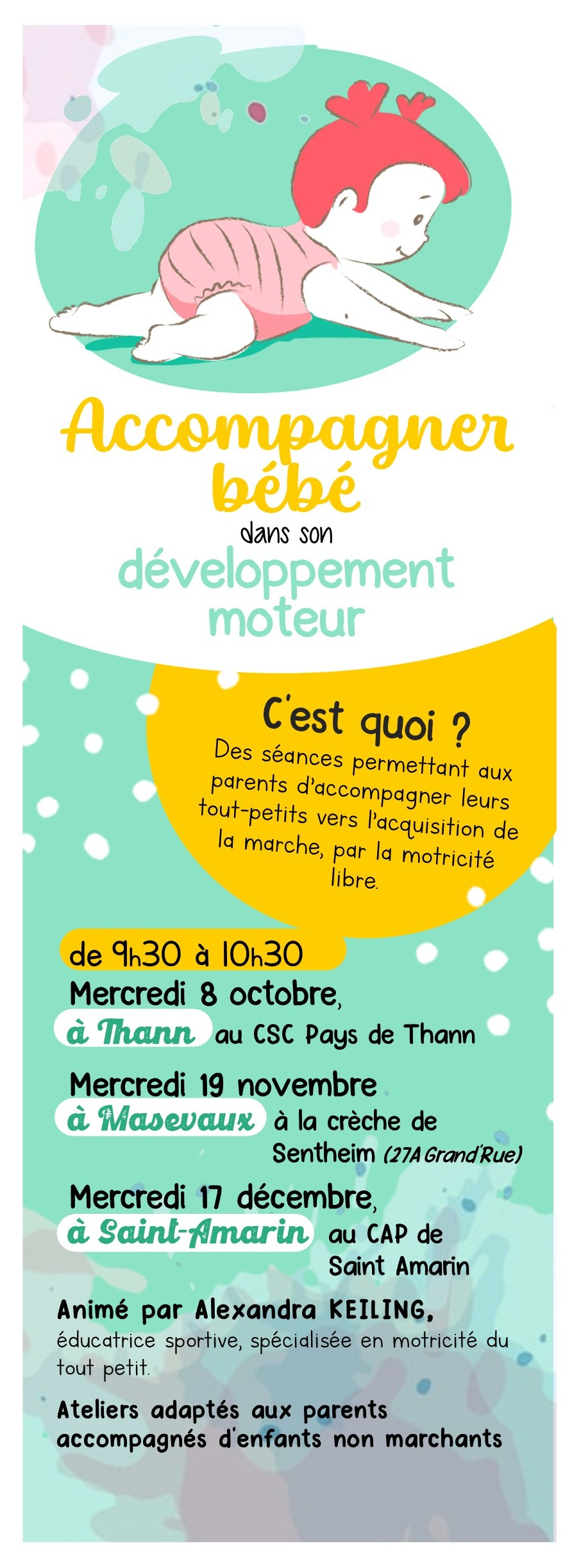 Le Centre Socioculturel du Pays de Thann vous accompagne dans votre rôle de parents et organise un atelier vous permettant d'accompagner votre enfant vers l'acquisition de la marche par la motricité libre.