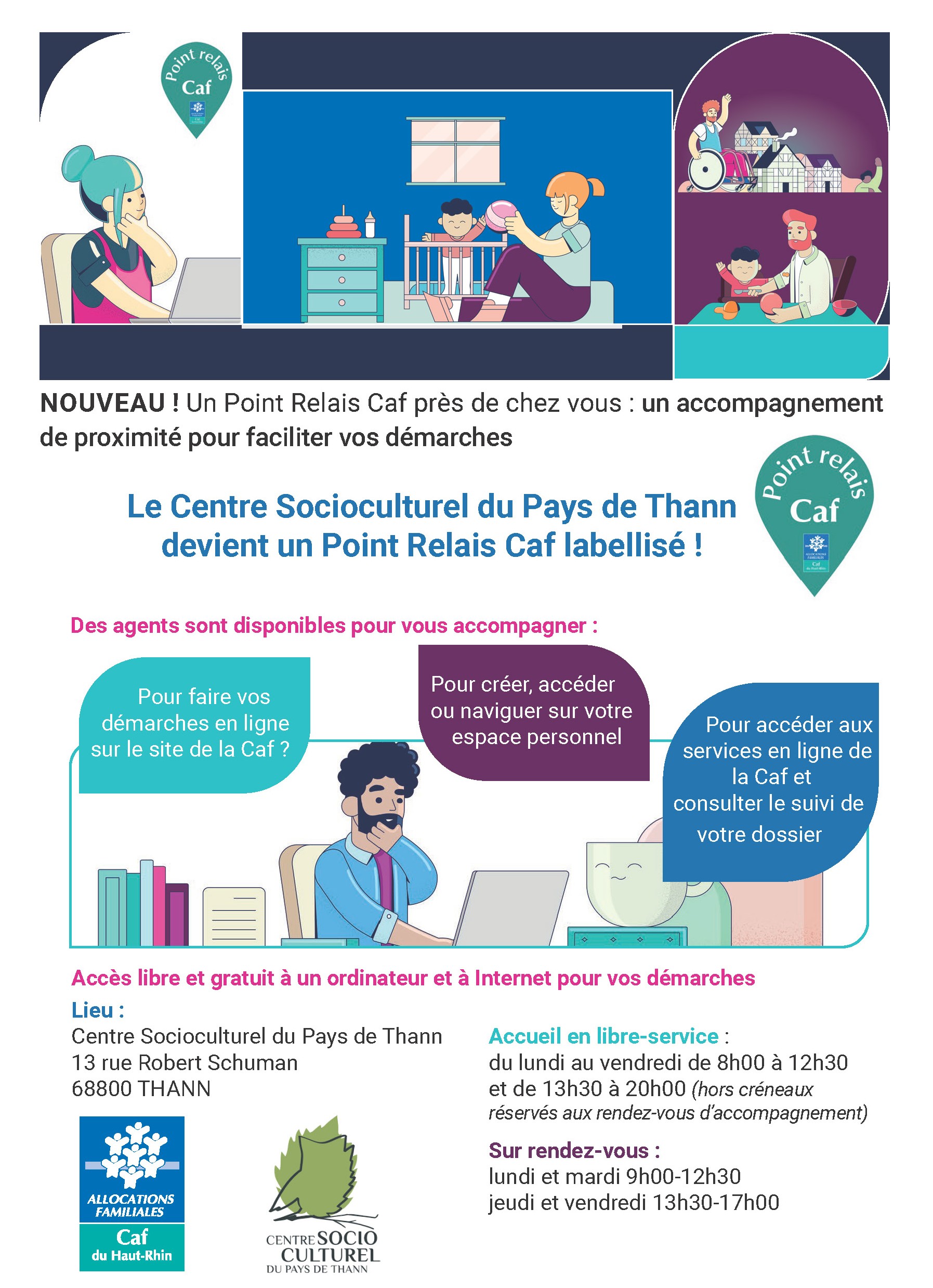 Le Point Relais CAF du Centre Socioculturel du Pays de Thann est là pour vous aider, en toute confidentialité et simplicité.